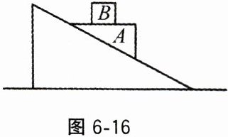 5. 如图 6 - 16 所示,斜劈 A 放在固定的斜面上,其上表面水平,物体 B 放在 A 上,在 A 和 B 一起沿斜面匀速下滑的过程中( )。