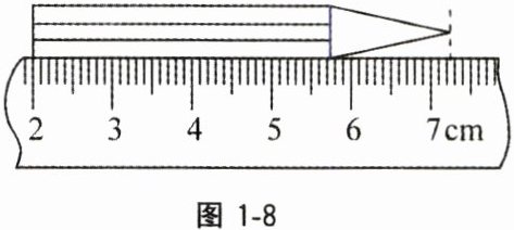 6. 用图 1 - 8 中的刻度尺来测量铅笔的长度,所测铅笔的长度为____ cm。