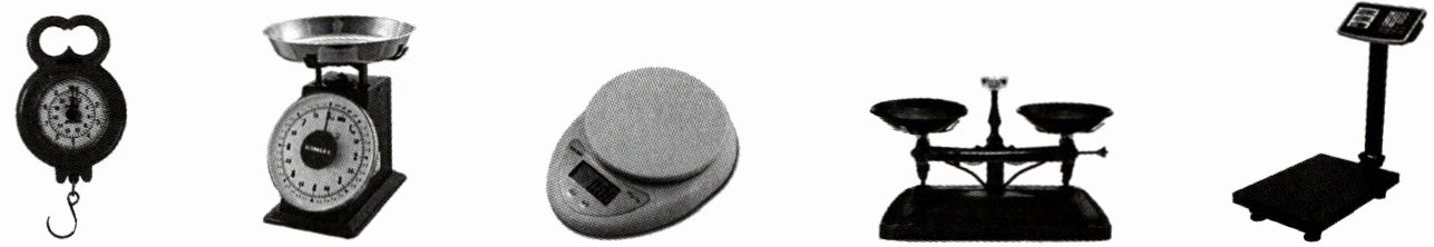 1 根据物品的轻重和特点,人们常常会使用不同的秤,下面是生活中常见的秤,你认识吗?请把适合用来称自己体重的秤圈出来。