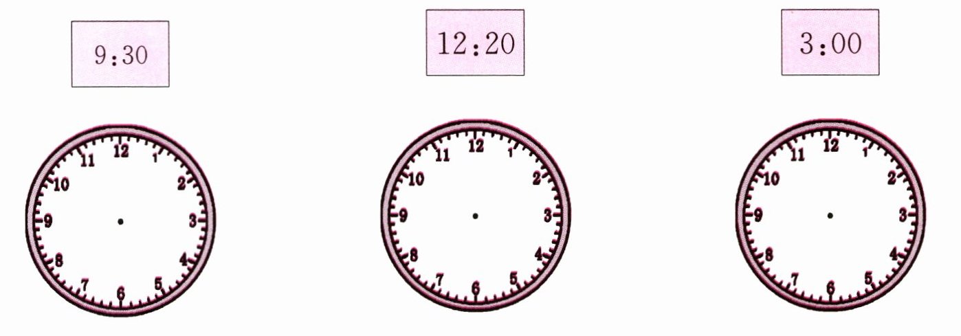3. 请根据时间在钟面上画出时针、分针的位置,并判断时针和分针所夹的角是锐角、直角还是钝角。