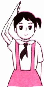 2. 少先队队员行队礼的标准动作为右手五指并拢,高举过头,紧贴耳侧,掌心朝向左前上方,胳膊肘部向身体右侧弯曲,神情庄重严肃。表示人民的利益高于一切,体现了少先队员的爱国情怀和奉献精神。此时,胳膊肘的角是(