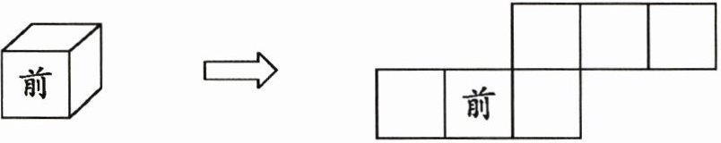 将正方体展开图中的各个面与原正方体对应标注如下(在展开图上标注,假设正面已标为“前”):