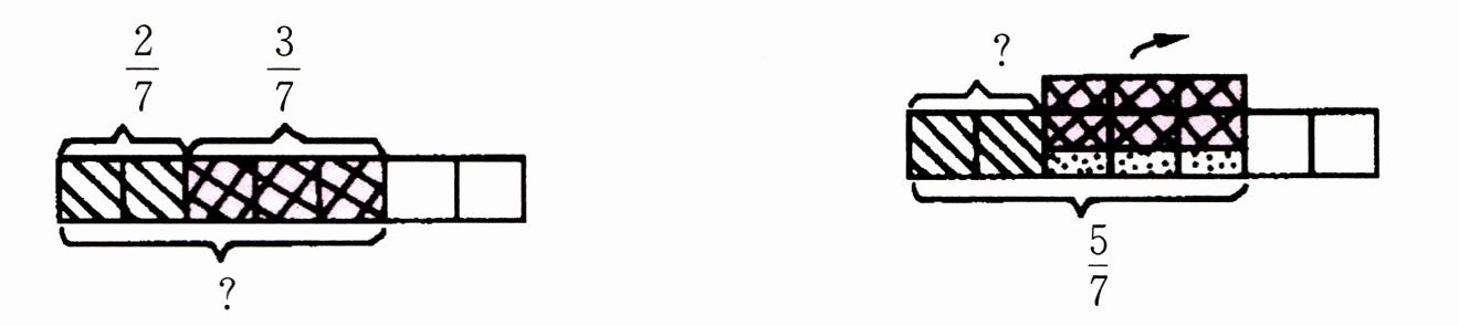 ( $\frac{2}{7}$ )+( $\frac{3}{7}$ )= ( $\frac{5}{7}$ ) ;( $\frac{5}{7}$ )-( $\frac{3}{7}$ )= ( $\frac{2}{7}$ )