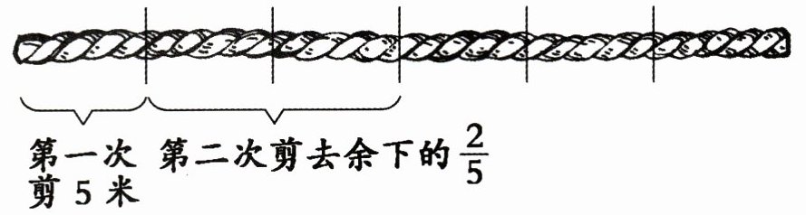 从图中可知,绳子被平均分成了5大段,总长度看作单位“5”,第一次剪去1大段即$\frac{1}{5}$是5米,所以绳子的总长度为: