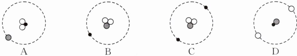 3. 核污水排入大海会极大危害海洋的生态环境。核污水中含有氚,氚是指原子核内有1个质子和2个中子的氢原子,“●”表示质子,“○”表示中子,“●”表示电子,下列示意图表示氚原子结构的是( )。