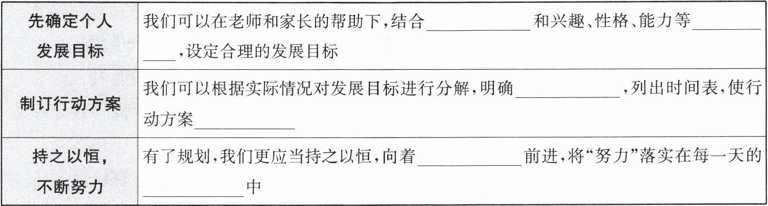 |先确定个人发展目标|我们可以在老师和家长的帮助下,结合______和兴趣、性格、能力等______,设定合理的发展目标|