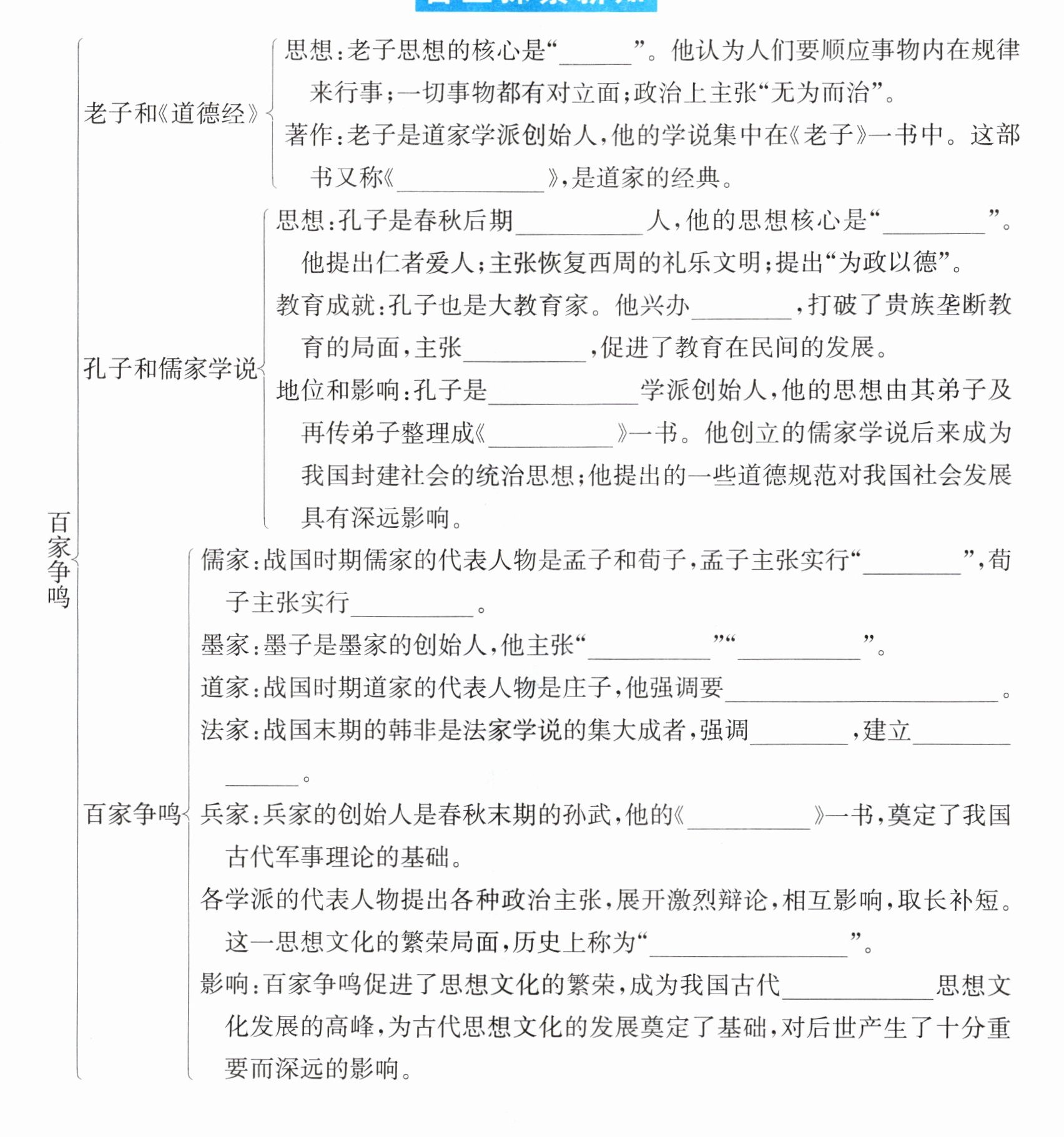 道 道德经 鲁国 仁 私学 有教无类 儒家 论语 仁政 礼治 兼爱 非攻 顺应自然和民心 以法治国 中央集权专制统治 孙子兵法 百家争鸣 第一次