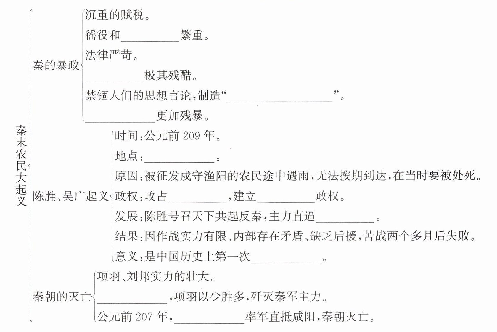 兵役 刑罚 焚书坑儒 秦二世 大泽乡 陈县 张楚 咸阳 农民大起义 巨鹿之战 刘邦