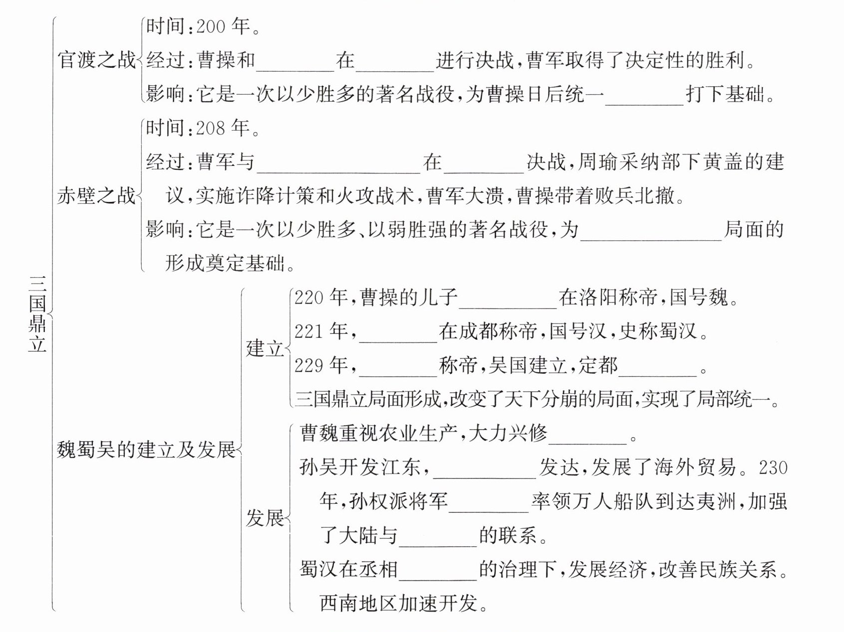 袁绍 官渡 北方 孙刘联军 赤壁 三国鼎立 曹丕 刘备 孙权 建业 水利 造船业 卫温 台湾 诸葛亮