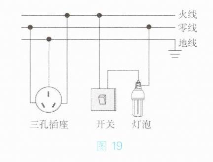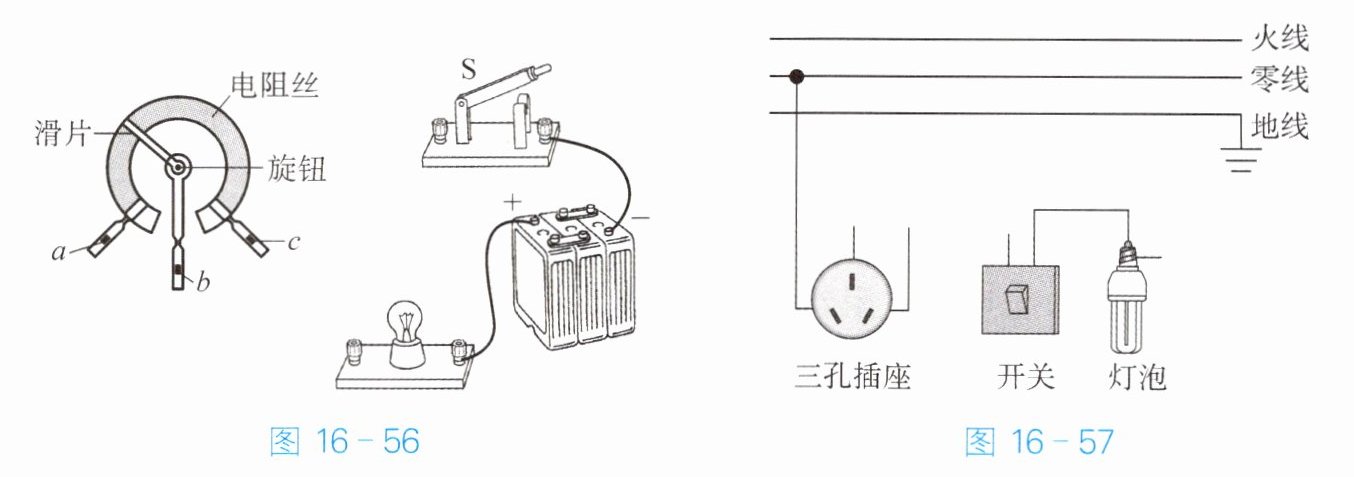 16. 请用笔画线表示导线,将图 16 - 57 中的三孔插座、开关和电灯分别接入电路。