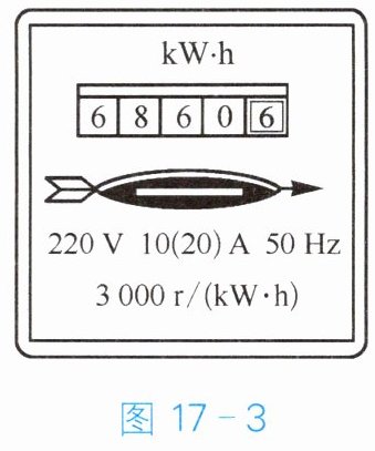- 举一反三:小刚家 4 月底电能表的示数为 $ 6750.6kW \cdot h $,5 月底电能表的示数如图 17 - 3 所示,那么他家 5 月消耗了
