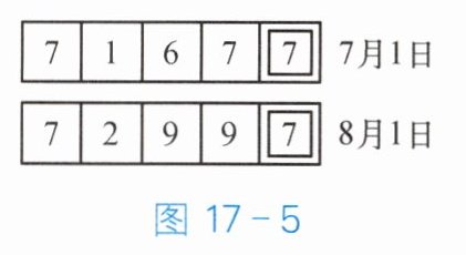 5. 明明家的电能表在 7 月 1 日和 8 月 1 日时表盘的两次示数如图 17 - 5 所示,则他家这一个月消耗的电能为