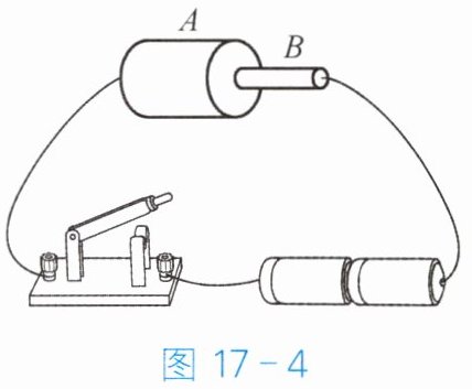3. 如图 17 - 4 所示,导体 $ A $、$ B $ 由同种材料制成,$ A $ 和 $ B $ 等长,但 $ A $ 比 $ B $ 的横截面积大。当开关闭合时,在相同时间内,下列叙述中正确的是(