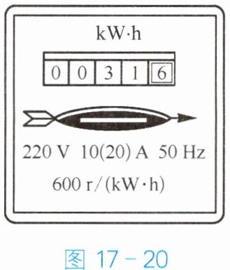 4. 一种家用电能表如图 17-20 所示。下列说法不正确的是(