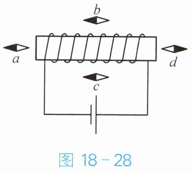1. 如图18-28所示,通电螺线管周围的小磁针a、b、c、d处于静止状态,其中小磁针N极指向正确的是(