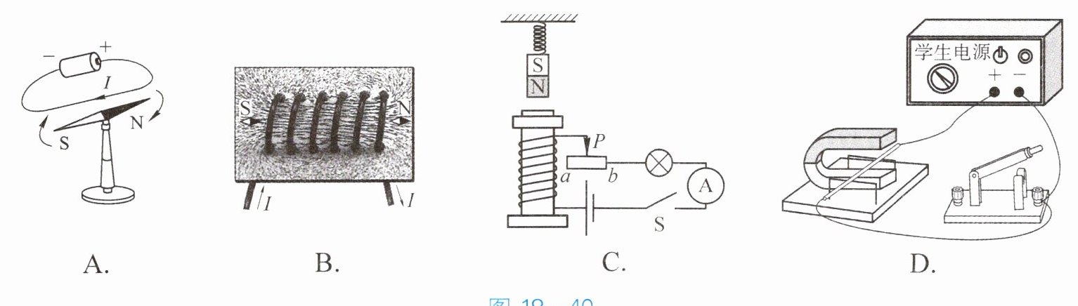 举一反三 图 18 - 39 是一款小电风扇。图 18 - 40 的实验装置中能说明小电风扇工作原理的是(