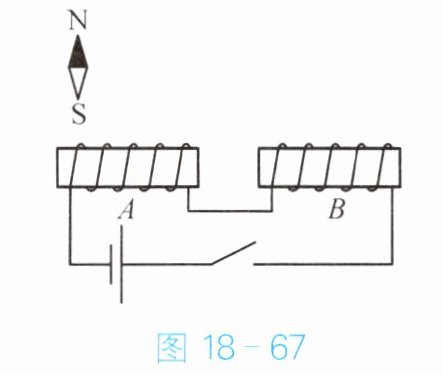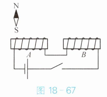 15. 如图 18 - 67 所示,当开关闭合后,会发现小磁针的 S 极向