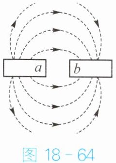 12. 如图 18 - 64 所示,$ a $、$ b $ 分别为两块条形磁体的某一磁极。根据图中磁感线的分布,可以判断 $ a $、$ b $ 为