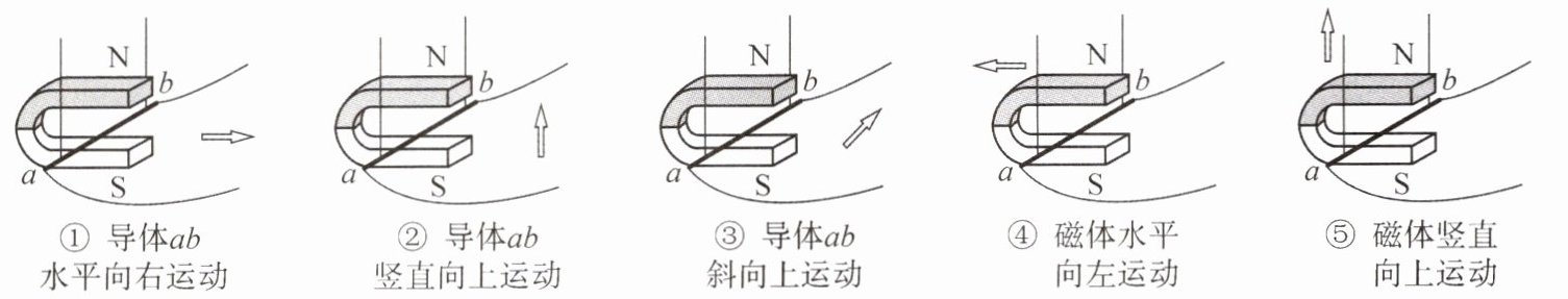 (2)小明进行了图 19 - 14 中的 5 次操作,其中能产生感应电流的是