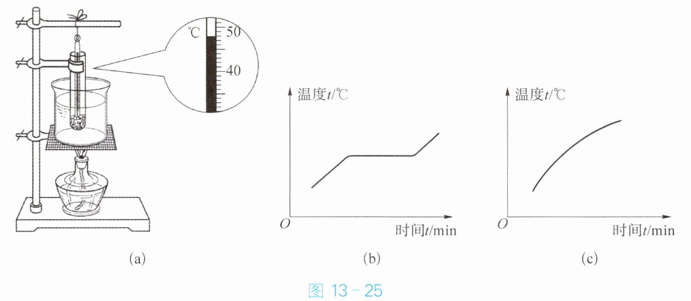 $^{\circ}C$。各组同学根据记录数据绘制了这两种物质的熔化图像,如图 13 - 25(b)(c)所示,其中图(b)