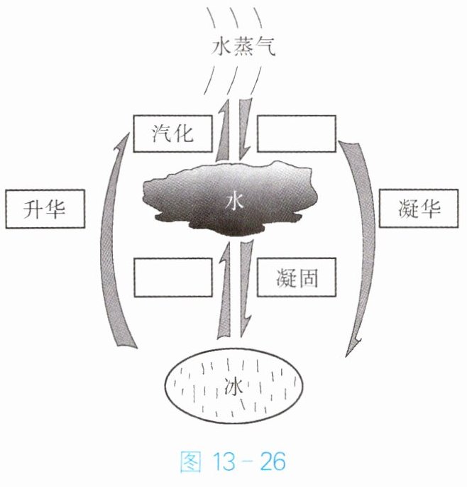 22. 图 13 - 26 是水循环状态变化图。请在图中空白方框内填写适当的物态变化名称。