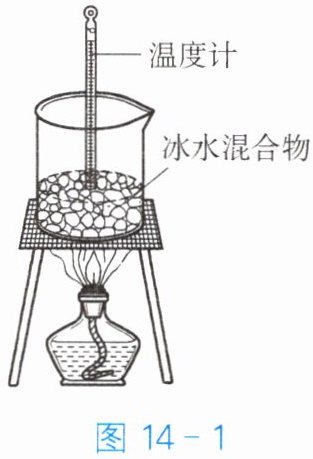 1. 如图 14 - 1 所示,酒精灯对烧杯中一定质量的冰水混合物进行加热。待其沸腾后,继续加热一段时间。下列说法中正确的是(