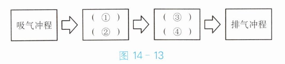 10. 图14-13说明了单缸四冲程汽油机的一个工作循环和涉及的主要能量转化情况。图中①②③④分别是(
