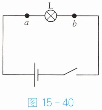 8. “用电流表测量电流”实验的电路图如图 15 - 40 所示,小明把电流表分别接在 $ a $、$ b $ 处,闭合开关后,测得的电流分别为 $ I_a $、$ I_b $。这两个电流的大小关系是(