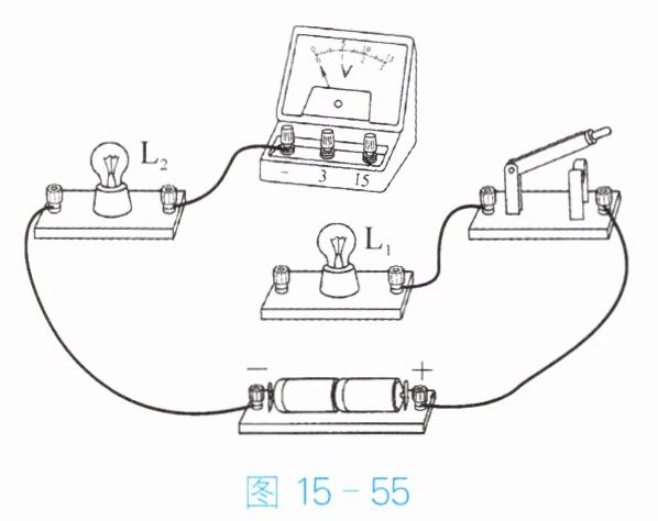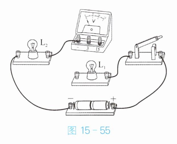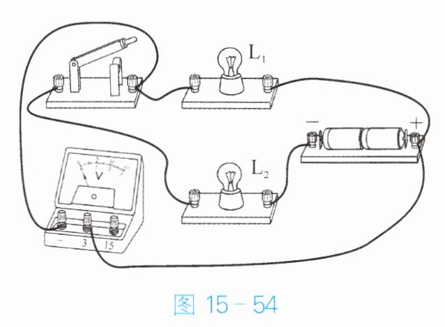 9. 如图15-54所示,当开关闭合后,电压表测出的电压是(
