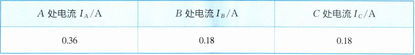 。| A处电流I_A/A | B处电流I_B/A | C处电流I_C/A |