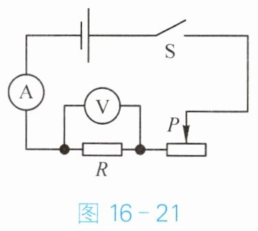 3. 如图 16 - 21 所示,在探究通过导体的电流与其电阻之间关系的实验中,将电阻$ R 由 5 \, \Omega 换成 10 \, \Omega $后,接下来的操作应该是(