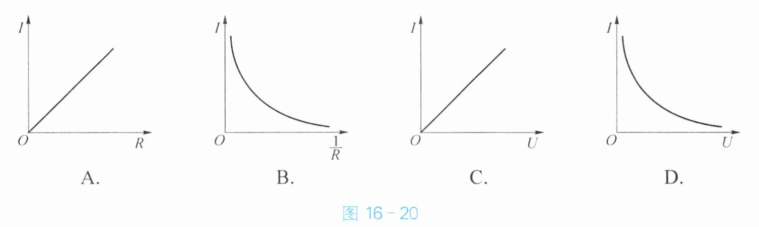 2. 在探究电流与电压、电阻关系的实验中,同学们绘制的四个图像如图 16 - 20 所示,其中正确的是(