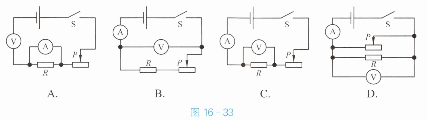 2. 图 16 - 33 是四位同学设计的伏安法测电阻 $ R $ 的实验电路图,其中正确的是(