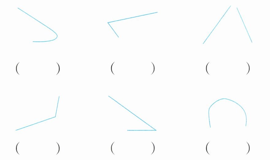 下面图形哪些是角?在相应的( )里画“√”