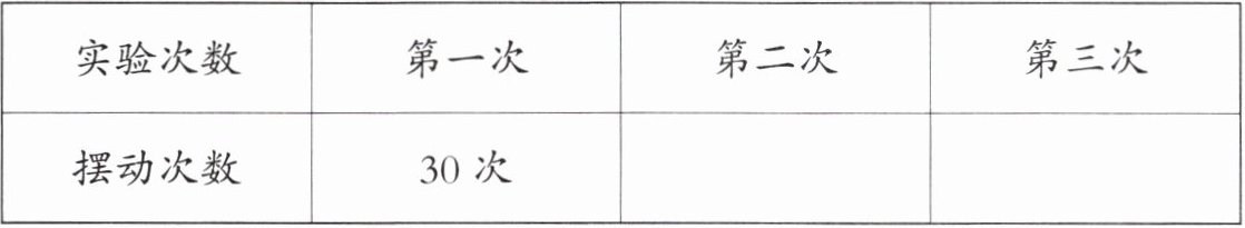 )。3. 在下表中记录摆在1分钟内的摆动次数,并回答下列问题。