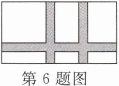 6. 如图,要在 20 m 宽、32 m 长的矩形耕地上修筑同样宽的三条小路(两条纵向,一条横向,横向与纵向互相垂直),把耕地分成大小不等的六块花田,要使花田面积为$ 570 m^2,$则道路应修多宽?