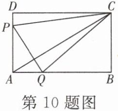 10. [创新意识]如图,在矩形 ABCD 中,AB= 8,AD= 4.点 P 从点 A 出发,沿 A→D→C→D 运动,速度为每秒 2 个单位长度;点 Q 从点 A 出发向点 B 运动,速度为每秒 1 个单位长度.P,Q 两点同时出发,点 Q 运动到点 B 时,两点同时停止运动.设点 Q 的运动时间为 t s,连接 PQ,AC,CP,CQ.