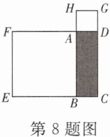 8. 如图,矩形 ABCD 的周长为 20 cm,以 AB,AD 为边向外作正方形 ABEF 和正方形 ADGH.如果正方形 ABEF 和正方形 ADGH 的面积之和为$ 68 cm^2,$那么矩形 ABCD 的面积为(