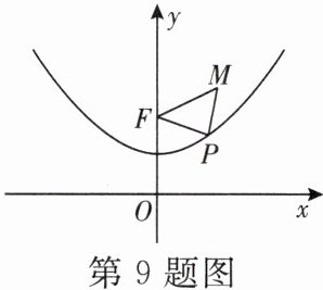 9. [创新意识]已知抛物线$y= \frac{1}{4}x^{2}+1$具有如下性质:该抛物线上任意一点到定点$F(0,2)$的距离与到x轴的距离相等. 如图,点M的坐标为$(\sqrt{3},3)$,P是抛物线$y= \frac{1}{4}x^{2}+1$上的一个动点.