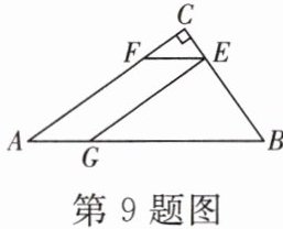 9. 一块三角形废料如图所示,$\angle A= 30^\circ$,$\angle C= 90^\circ$,$BC= 6$.用这块废料剪出一个平行四边形$AGEF$,其中,点$G$,$E$,$F分别在AB$,$BC$,$AC$上.设$CE= x$.