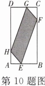 10. 如图,在矩形$ABCD$中,$AB= 2$,$BC= 4$,$E$,$F$,$G$,$H依次是边AB$,$BC$,$CD$,$DA$上一点(不与各顶点重合),且$AE= AH= CG= CF$,记四边形$EFGH的面积为S$(图中阴影部分),$AE= x$.