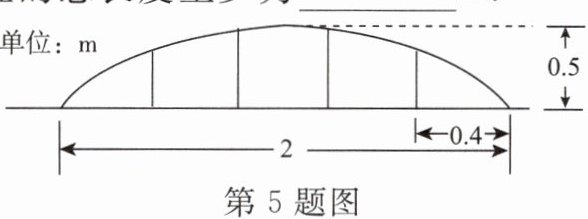 5. 如图,某公园草坪的防护栏是由形状相同的抛物线组成的,为了牢固起见,每段防护栏需要间隔0.4 m加设一根不锈钢支柱.若防护栏的最高点距底部0.5 m,则每段防护栏需要不锈钢支柱的总长度至少为______m.