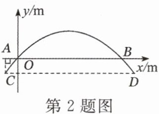 2. 如图是拱形大桥的示意图,桥拱与桥面的交点为O,B,以O为原点,水平直线OB为x轴,建立平面直角坐标系,桥拱可以近似看成抛物线$y= -\dfrac{1}{400}(x-80)^{2}+16$,桥拱与桥墩AC的交点C恰好在水面,且AC⊥x轴.若OA= 10 m,则桥面离水面的高度AC为 ( )