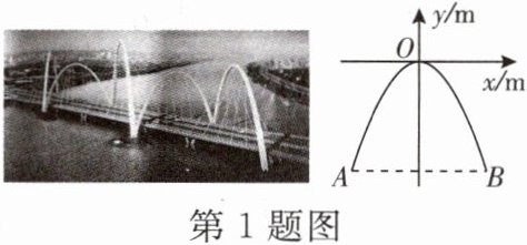 1. 一座大桥最高的钢拱如图所示,此钢拱(近似看成抛物线)在同一竖直平面内,与拱脚所在的水平面相交于A,B两点,拱高为78 m(即最高点O到AB的距离为78 m),跨度为90 m(即AB= 90 m),以最高点O为坐标原点,平行于AB的直线为x轴建立平面直角坐标系,则此抛物线形钢拱的函数解析式为 ( )