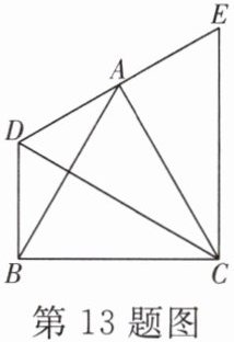 13. [推理能力]如图,△ABC为等边三角形,以AB为边向外作△ABD,使∠ADB= 120°,连接CD,再以点C为旋转中心把△CBD顺时针旋转60°得到△CAE,有下列结论:①D,A,E三点共线;②DC平分∠BDA;③DC= DB+DA;④AD= BD. 其中正确的是( )