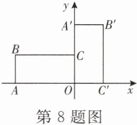 8. 如图,在平面直角坐标系中,点A的坐标为(-4,0),点C的坐标为(0,2). 以OA,OC为边作矩形OABC. 若将矩形OABC绕点O顺时针旋转90°,得到矩形OA'B'C',则点B'的坐标为( )