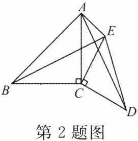 2. 如图,△ABC与△CDE都是等腰直角三角形,∠ACB= ∠DCE= 90°,AC= 6,点E在点A右侧,AE= 3,∠CAE= 45°.