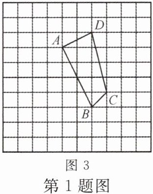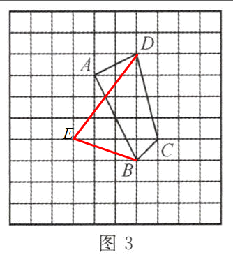 (3)在图3中,画一个格点三角形BDE,使△BDE的面积等于四边形ABCD的面积且△BDE为轴对称图形(只需要作出1个即可).