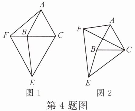 4. 如图1,△ABC和△CEF是两个大小不等的等边三角形,且有一个公共顶点C,连接AF和BE.