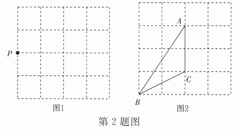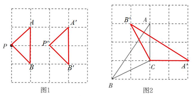 (1)在图1中先画出一个以格点P为顶点的等腰三角形PAB,再画出该三角形向右平移2个单位长度后的△P′A′B′;